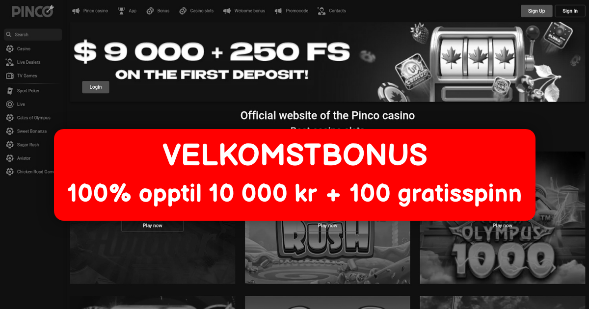 Pinco Casino inviterer deg til en verden av spenning og gevinster rett fra Norge. Start reisen din med vår generøse velkomstbonus på 100% opp til 5000 NOK, som gir deg ekstra midler å spille for fra første stund. Vi er lisensiert av Malta Gaming Authority, noe som sikrer fair play og trygghet for alle spillere. Nyt fordeler som lynraske uttak, ofte innen 24 timer, og døgnåpen kundestøtte på norsk via chat eller e-post. Vårt utvalg inkluderer tusenvis av spilleautomater, bordspill og andre favoritter fra ledende leverandører som NetEnt, Pragmatic Play og Microgaming. Enten du elsker klassiske slots eller moderne videoautomater, finner du det beste online spilleautomater her. Mobil casino bonus gjør det enkelt å spille på farten med vår optimaliserte app og nettside, kompatibel med alle enheter. Sett inn penger trygt med metoder som Visa, Mastercard, Skrill og Trustly, og ta ut gevinstene raskt til din norske bankkonto. Som et rask utbetaling casino prioriterer vi din tilfredshet, så bli med i dag og opplev ekte casino-moro hjemme i Norge.